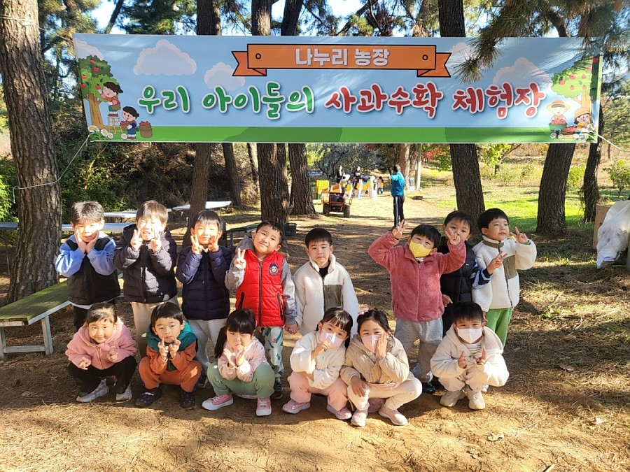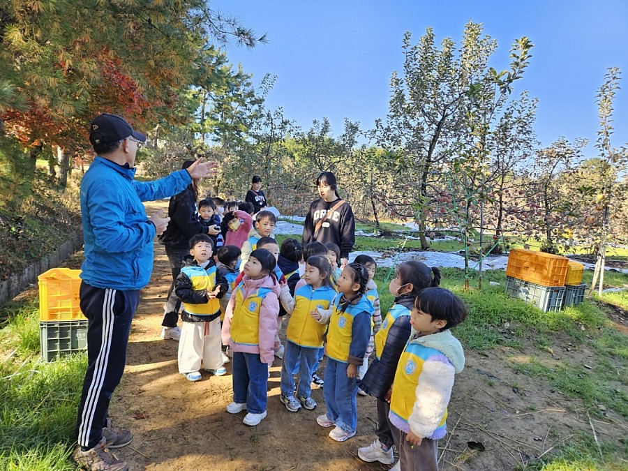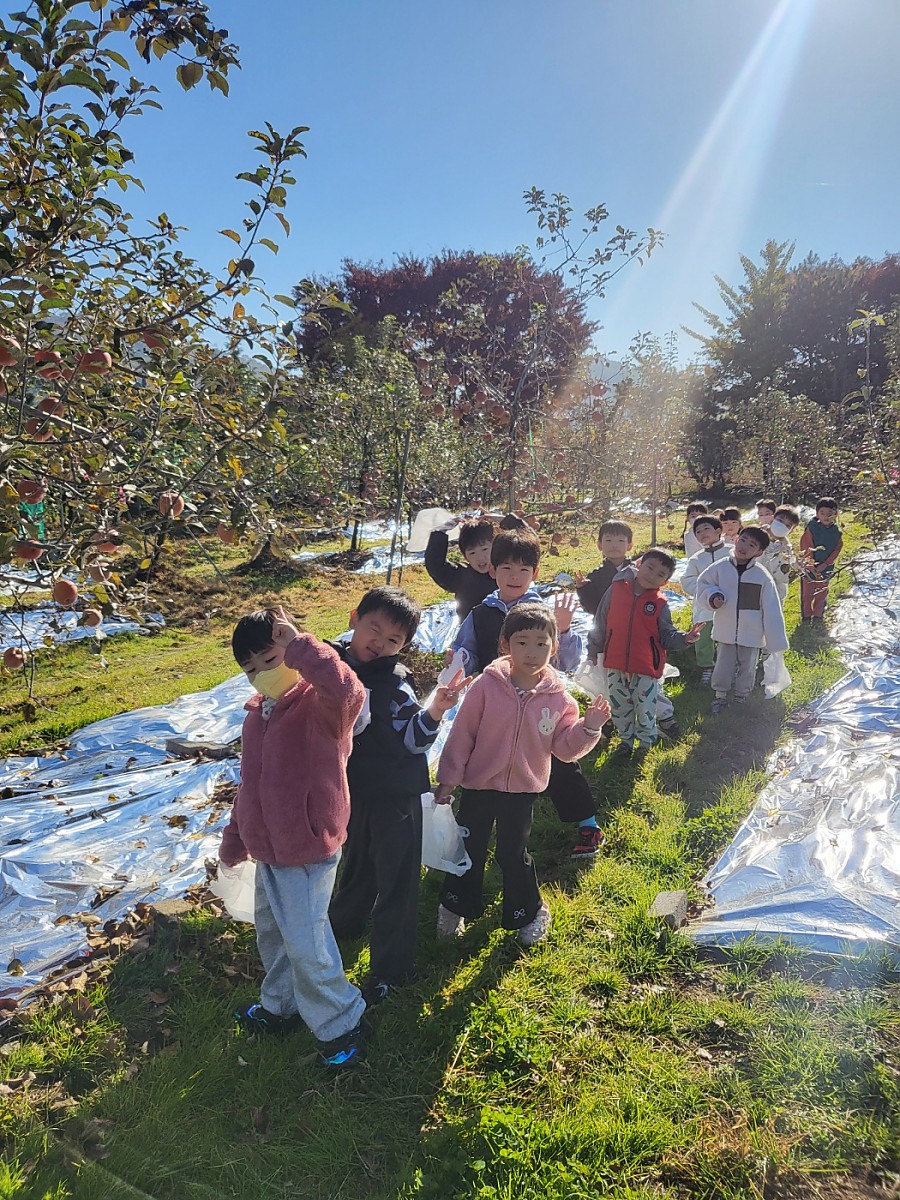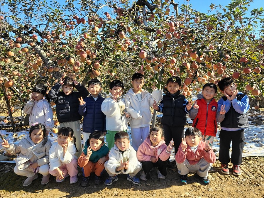 하나 친구들이 사과따기 체험을 다녀왔습니다. 탐스럽게 열린 빨간 사과들을 직접 따보며 농부 아저씨의 정성과 자연의 소중함을 느낄 수 있는 시간이었습니다.