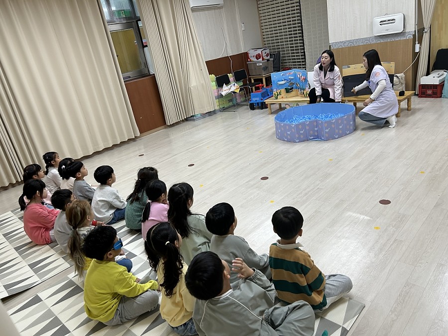 계룡시 어린이 사회복지급식관리지원센터에서 ‘어서와, 바다는 처음이지’라는 주제로 바다 식재료(해산물, 해조류 등)의 종류와 영양소에 대해 배우는 어린이 방문교육에 참여하였습니다.