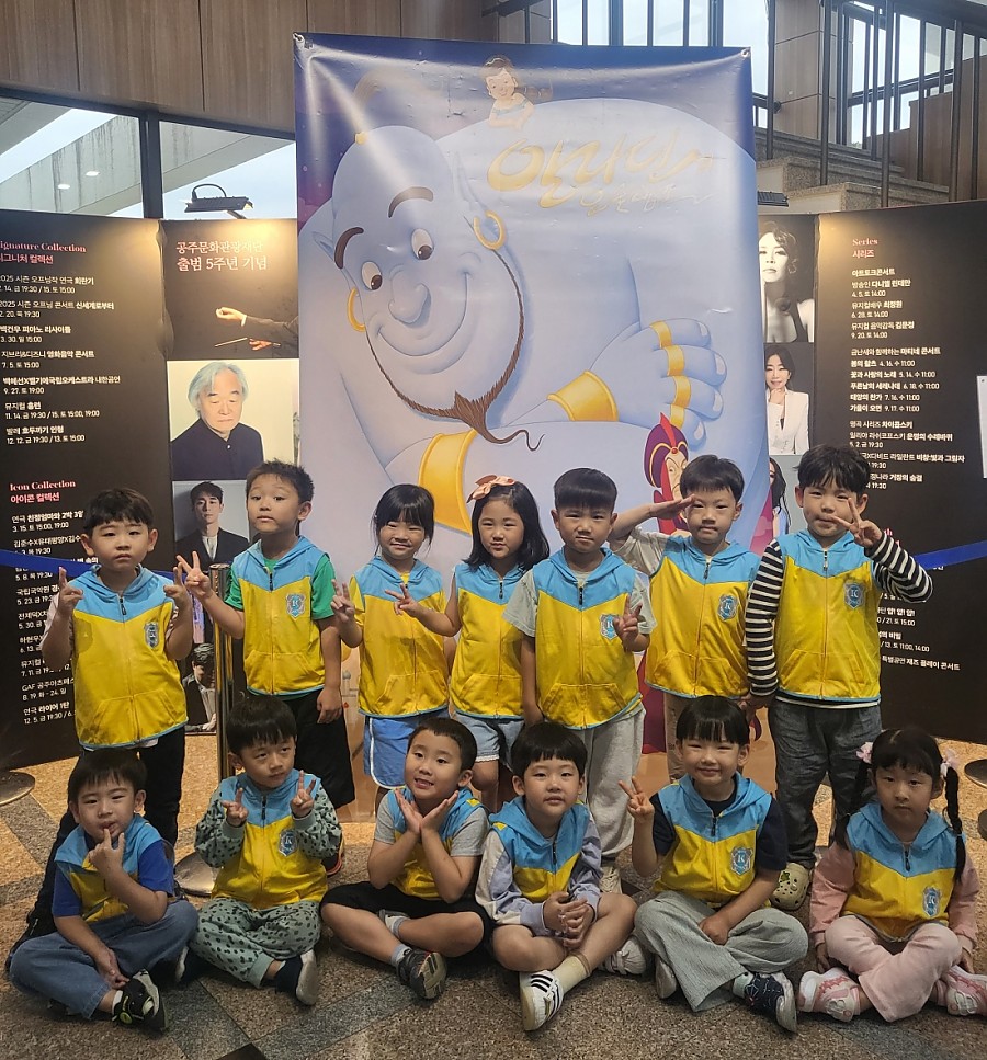 공주예술문예회관에서 뮤지컬 '알라딘과 요술램프' 공연을 관람했습니다. 환상적인 이야기 속 모험을 함께하고, 생생한 무대 예술을 통해 상상력과 감성을 키우는 즐거운 시간이었습니다.