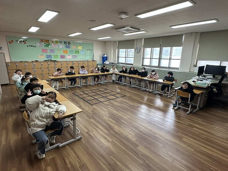 잎새반 친구들이 2026학년도 초등학교 이음 교육 활동에서 초등학교 진학을 앞두고 ‘초등학교 입학 전 준비’ 교육에 참여했습니다. 현직 초등학교 선생님의 강의를 통해 교실에서의 생활 규칙, 친구들과 의 관계 형성, 준비물 등 실질적인 학교생활 정보를 배우며, 아이들이 자신감 있게 초등학교에 적응할 수 있는 많은 도움을 얻는 뜻깊은 시간이었습니다. 또한 엄사초등학교를 방문하여 교실, 도서관, 급식실, 운동장 등 학교 시설을 직접 둘러보며 초등학교 생활을 미리 경험해 보았고, 학교에 대한 궁금증을 풀며 기대감과 자신감을 키우는 즐겁고 의미 있는 시간이었습니다.
