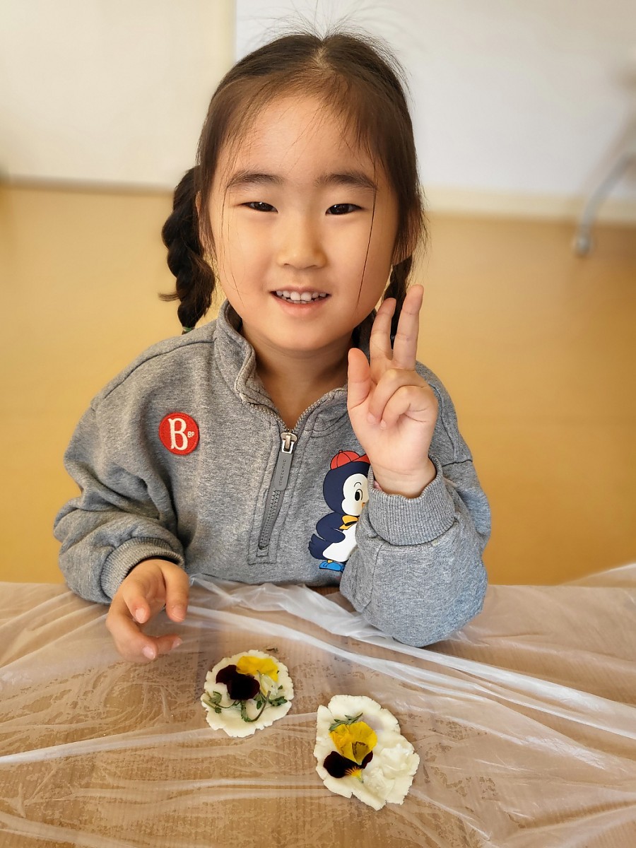 아이들은 반죽을 만지고 꽃을 올리며 자연의 색과 향을 느껴보고, 자신만의 화전을 완성하는 즐거움을 경험했습니다. 완성된 화전을 친구들과 나누어 먹으며 더욱 따뜻한 시간을 보냈습니다.