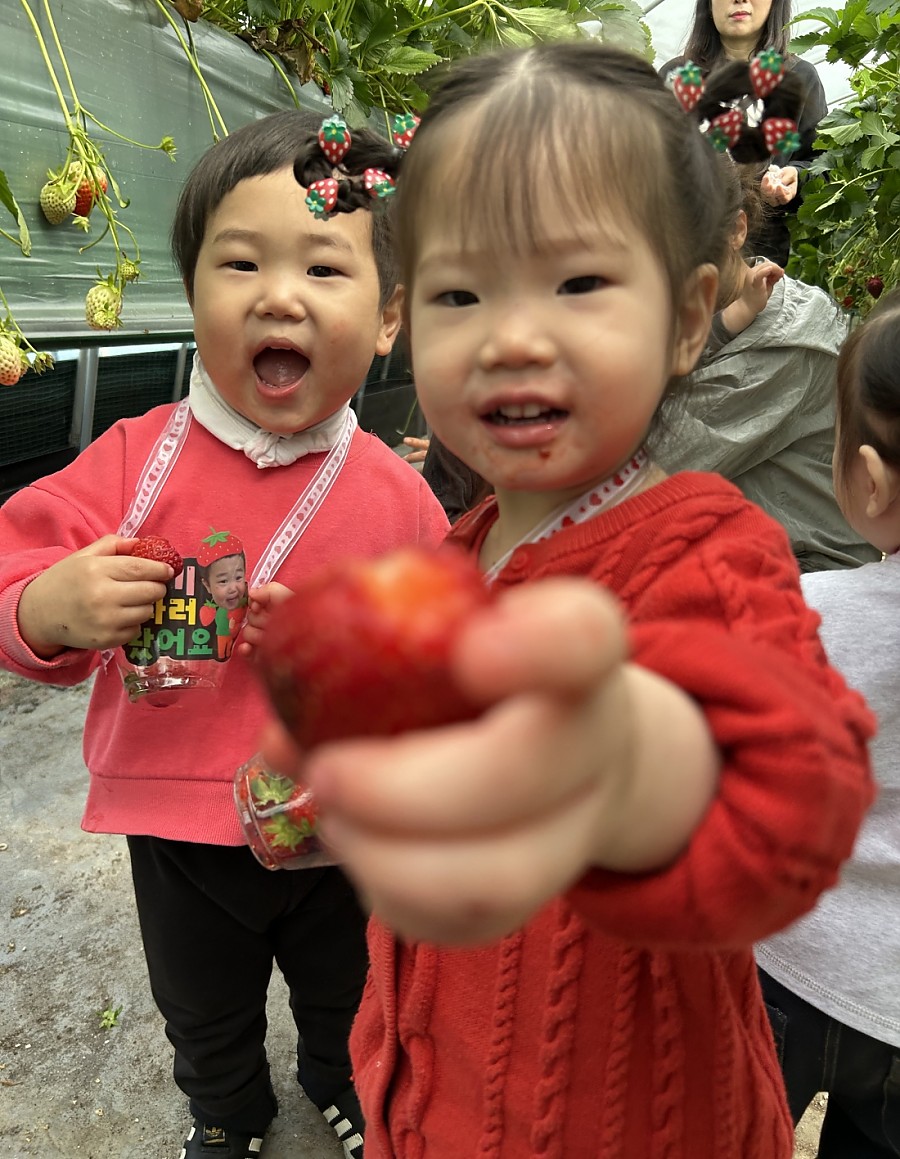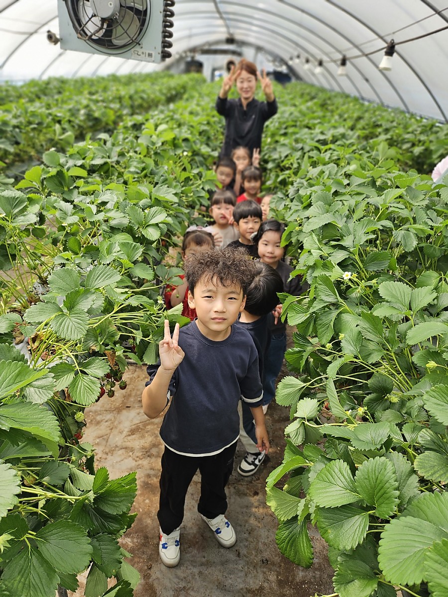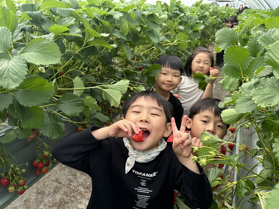 계룡시 정보화 마을에서 딸기 따기 체험활동을 했습니다. 우리 아이들이 고사리손으로 빨갛게 익은 딸기를 하나하나 정성껏 따서 입에 넣어 보며 새콤달콤한 맛에 웃음꽃을 피우고, 자연 속에서 소중한 추억을 쌓는 시간이었습니다.